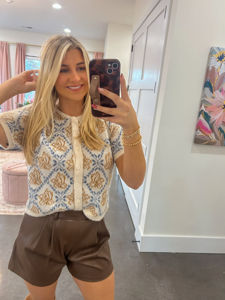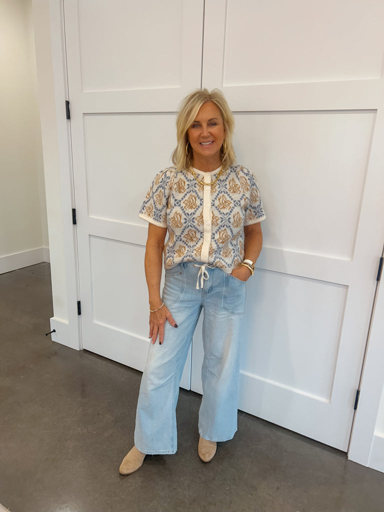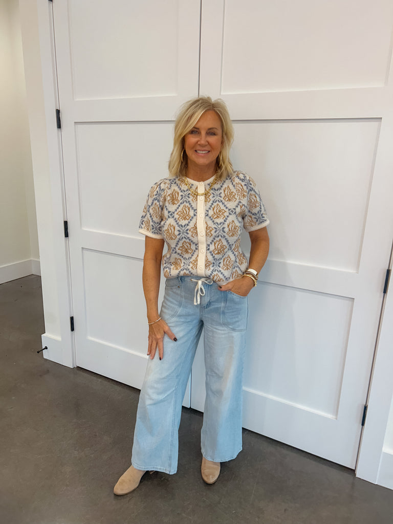 Midtown Charm Knit Ivory & Blue Floral Sweater